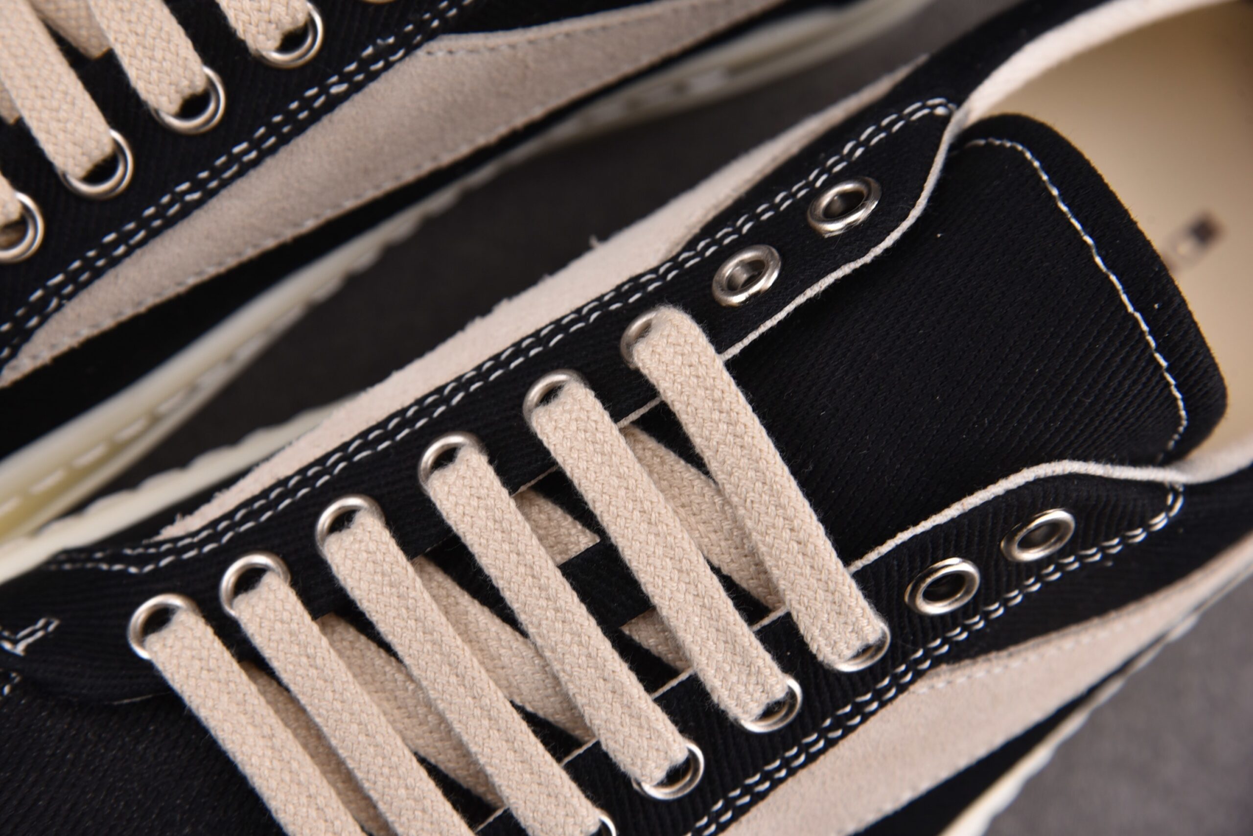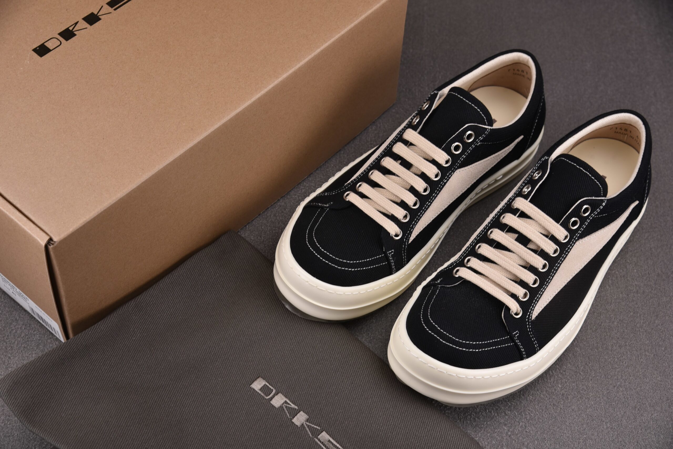 (BEST) Rick Owens Canvas Vintage ‘BLACK MILK WHITE’ Sneakers